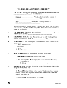 Free Editable Virginia Separation Agreement Template