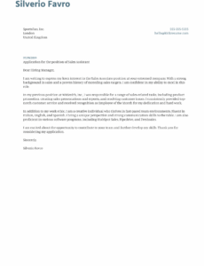 Free Sales Assistant Cover Letter Template
