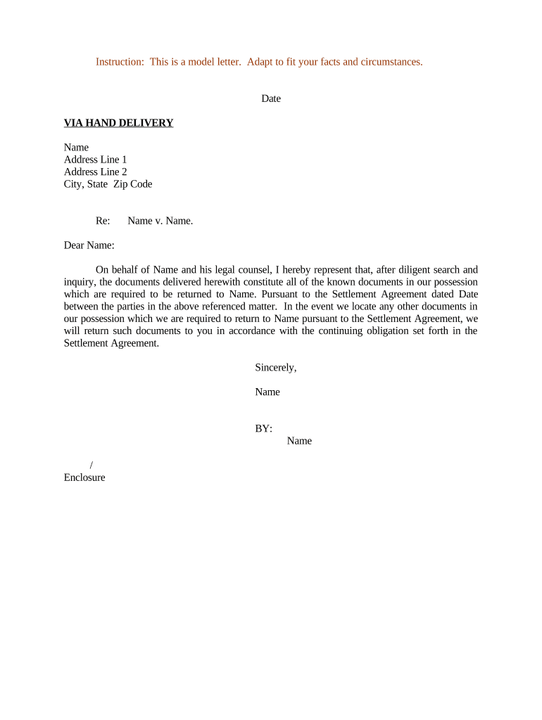 - Contractual Agreement Closure: Upon the completion or termination of a contract, this correspondence can accompany the return of original signed agreements, intellectual property, or confidential project files to the relevant parties. It solidifies the closure of the contractual relationship with a clear paper trail.