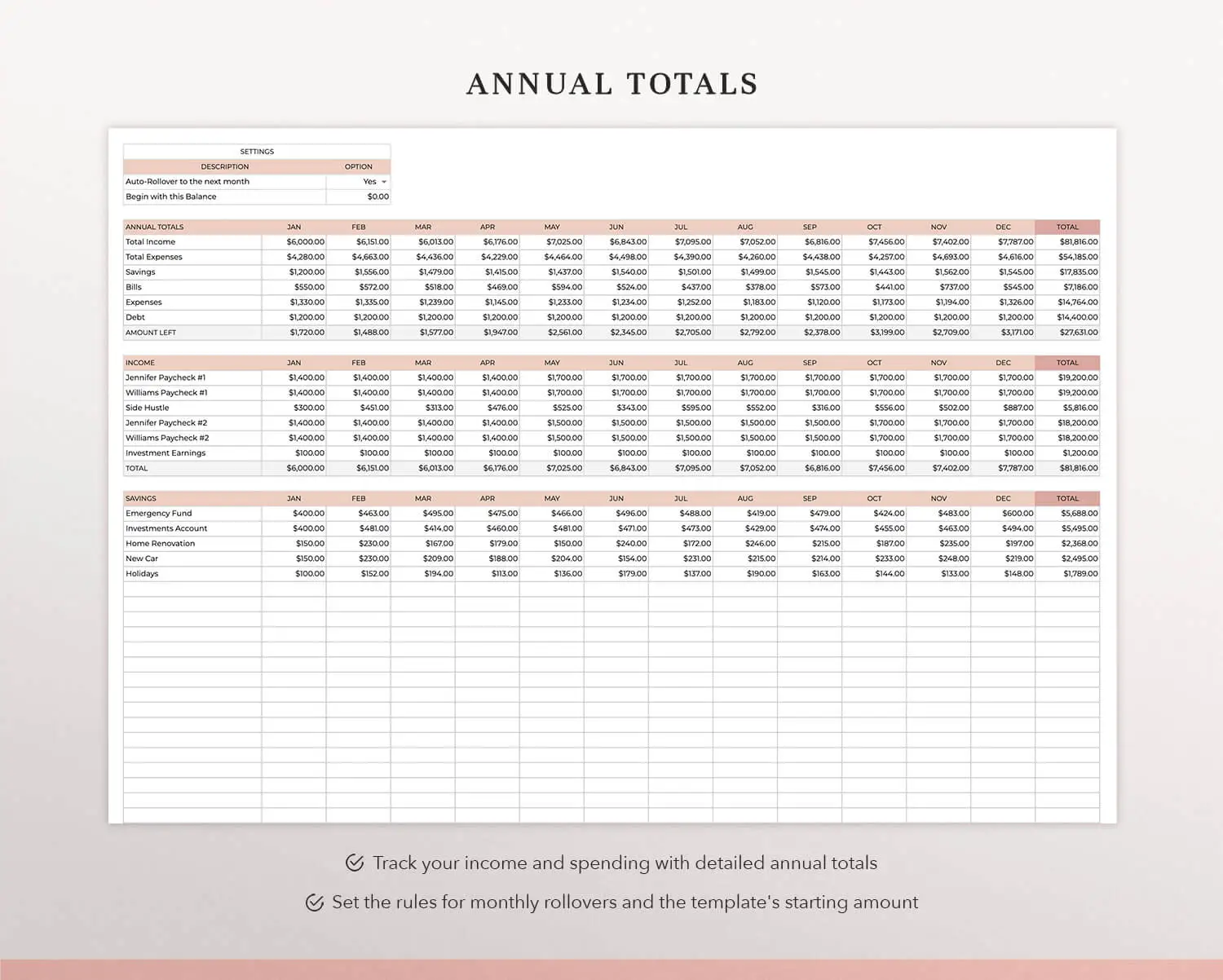 • Setting and Achieving Savings Goals: Whether it’s retirement, college funds, or a specific investment, the document provides a clear path to monitor and reach your targets.